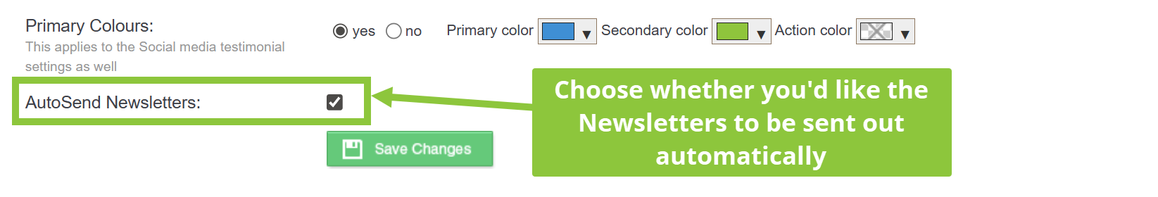 - Choose to Enable or Disable Auto-Sending Newsletters by checking the box.