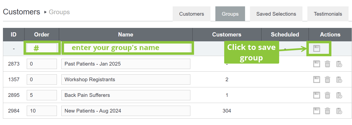 Click here to learn more about adding customers to Groups.