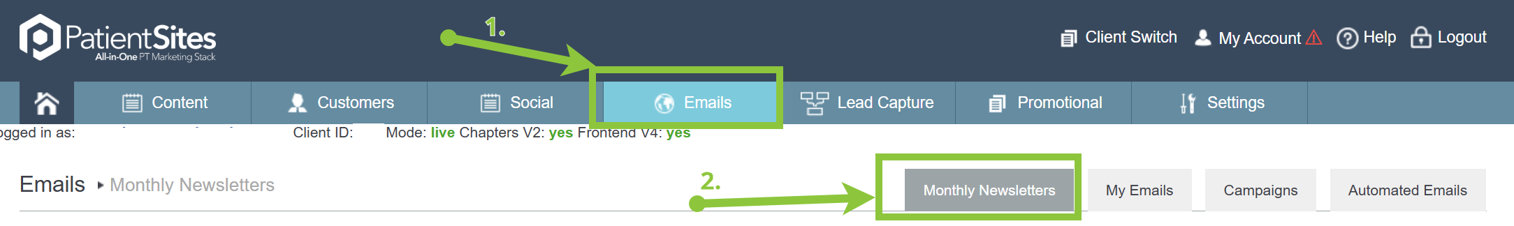 2) Head over to Emails in the main menu and click the Monthly Newsletters tab.