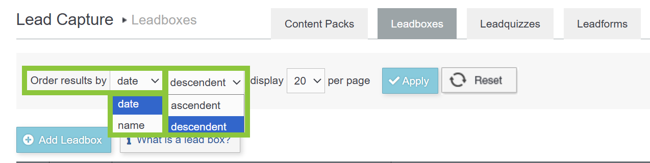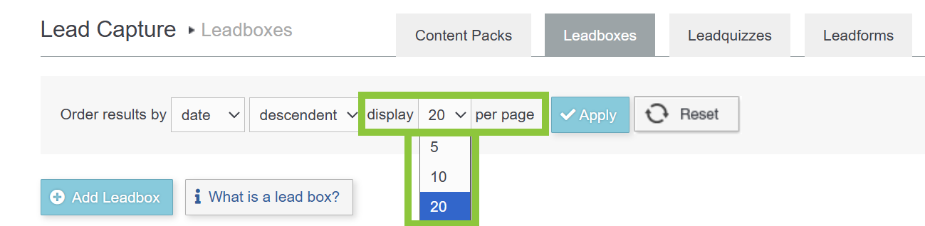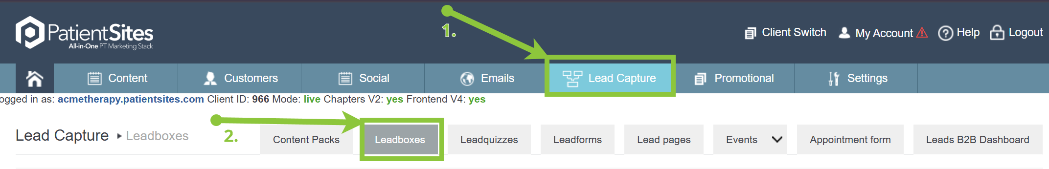2) From the Lead Capture section in the Main Navigation Bar, click on the Leadboxes submenu item.