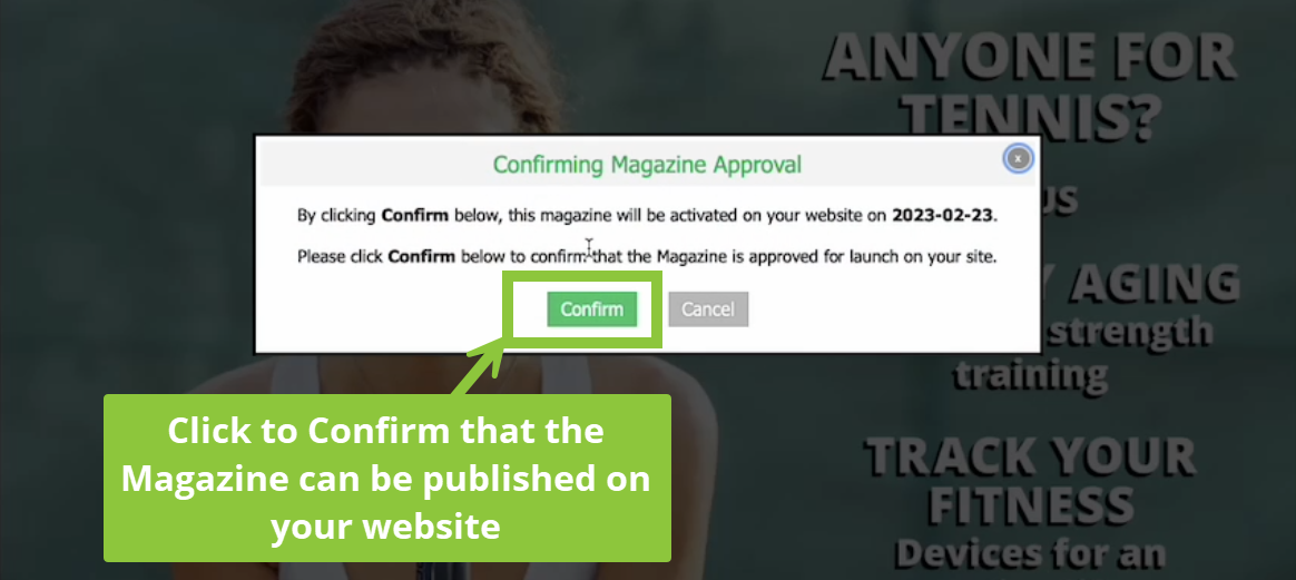- If you click Approve (ready to go), another pop-up box will open where you will need to confirm that the Magazine is ready to be published on your website.