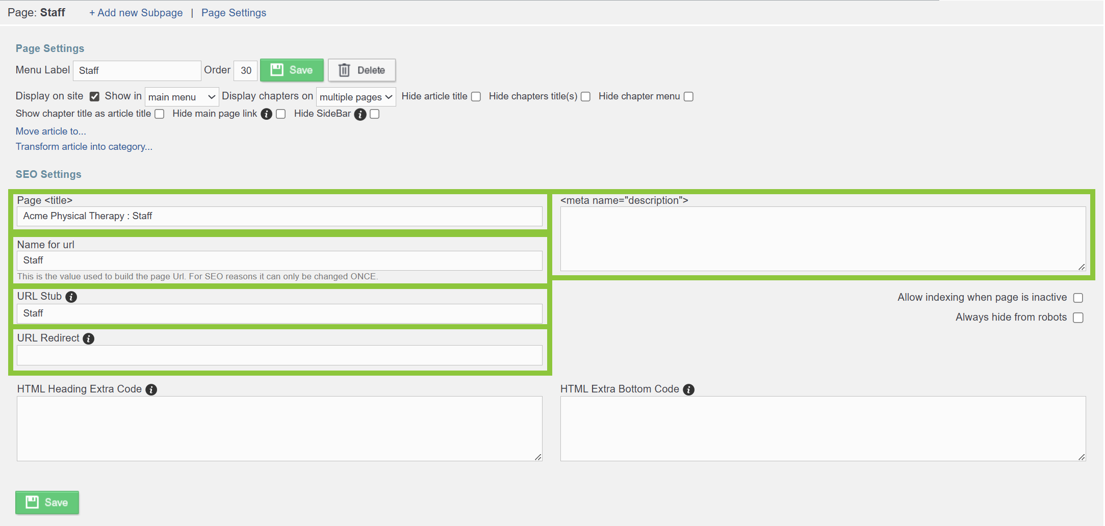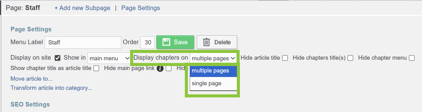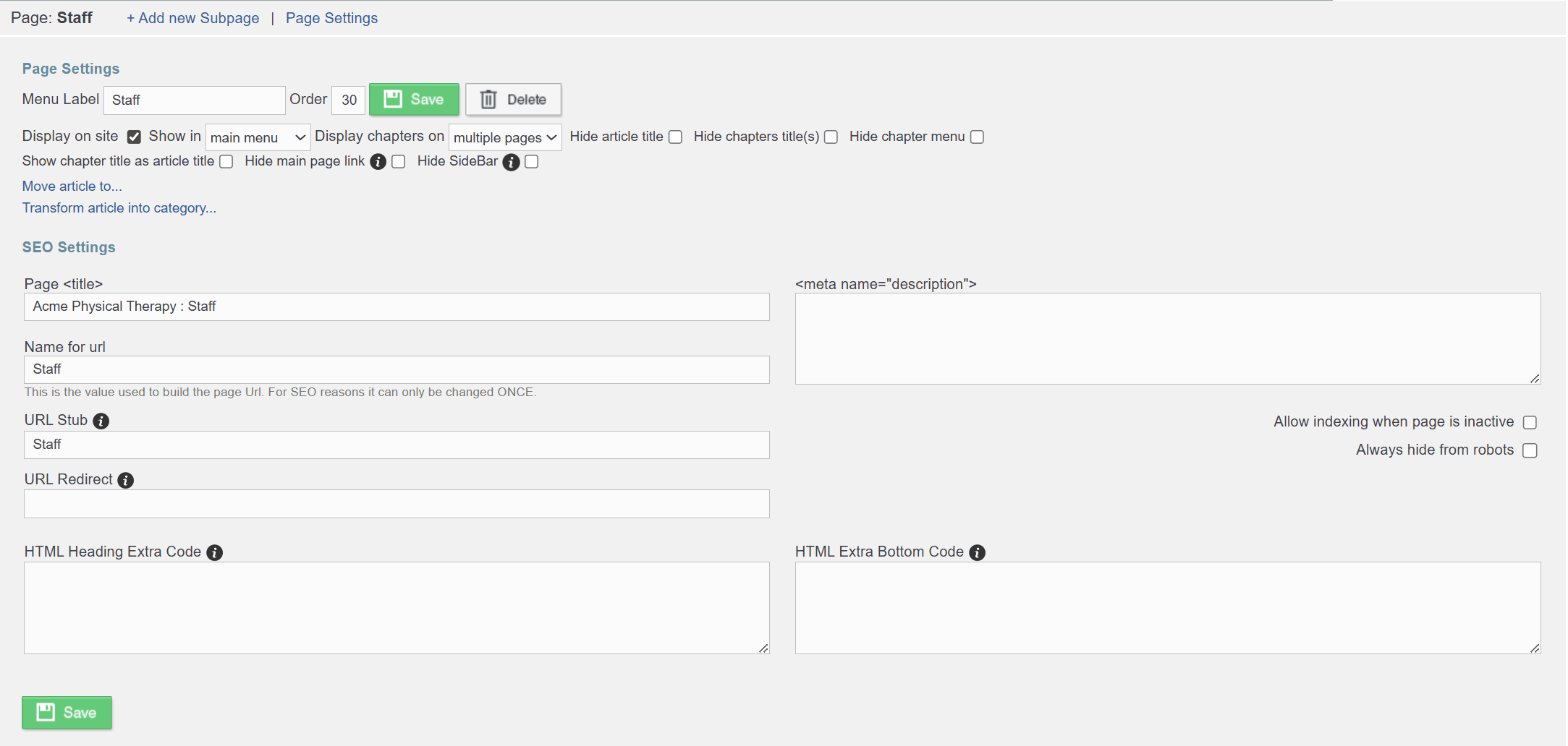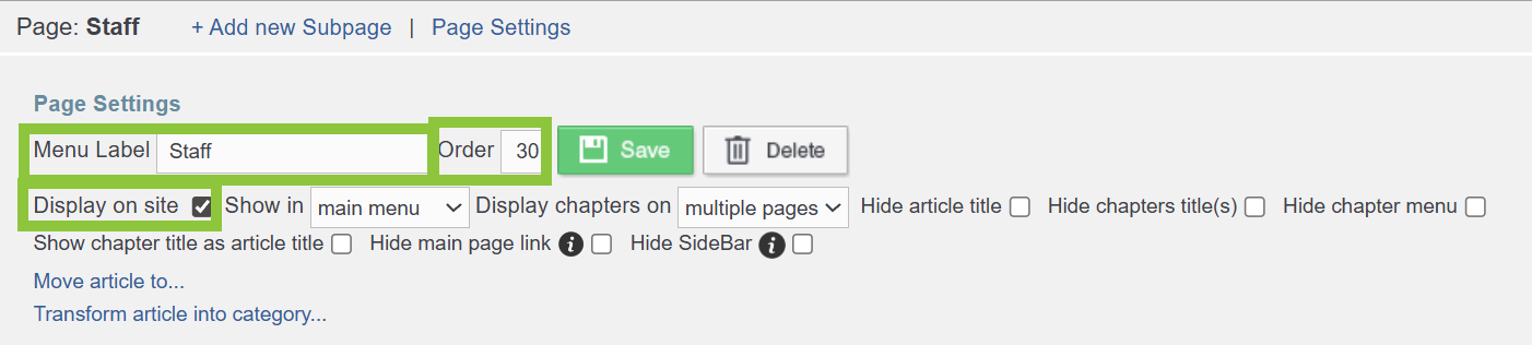 - Enter the order of the page in the Order text entry box. This will decide its position among the other webpages on your website.