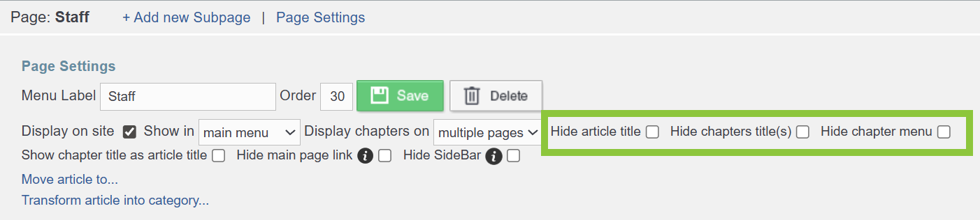 - Check or un-check the Hide Chapter Menu box to specify whether or not the chapter menu is to be hidden on the site.