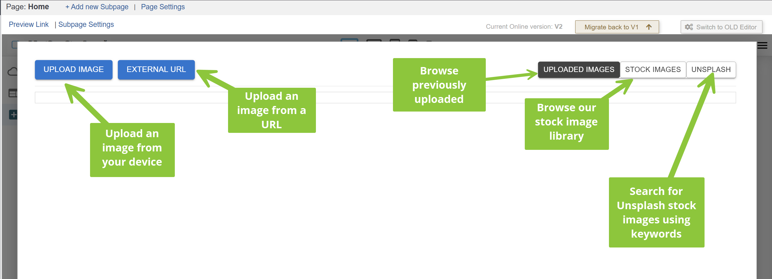 Alternatively, you can also browse Stock Images, or search for keywords under Unsplash and use a stock image from our library.