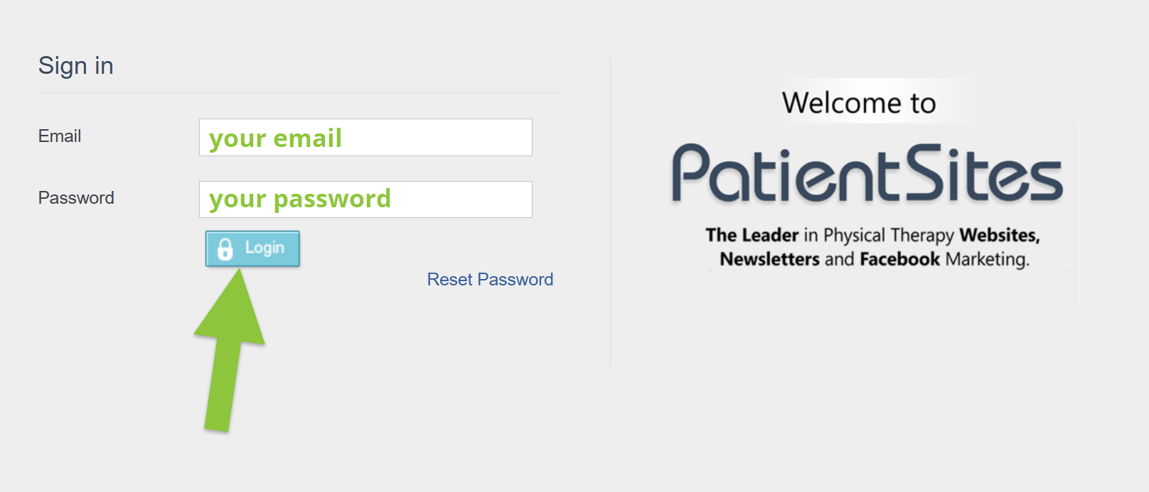 1) Log in to PatientSites Web Editor at client.patientsites.com