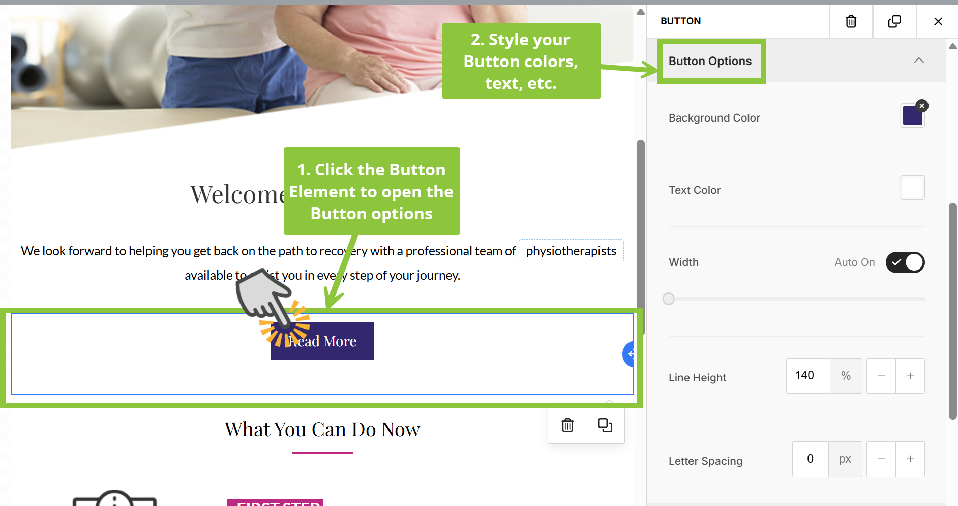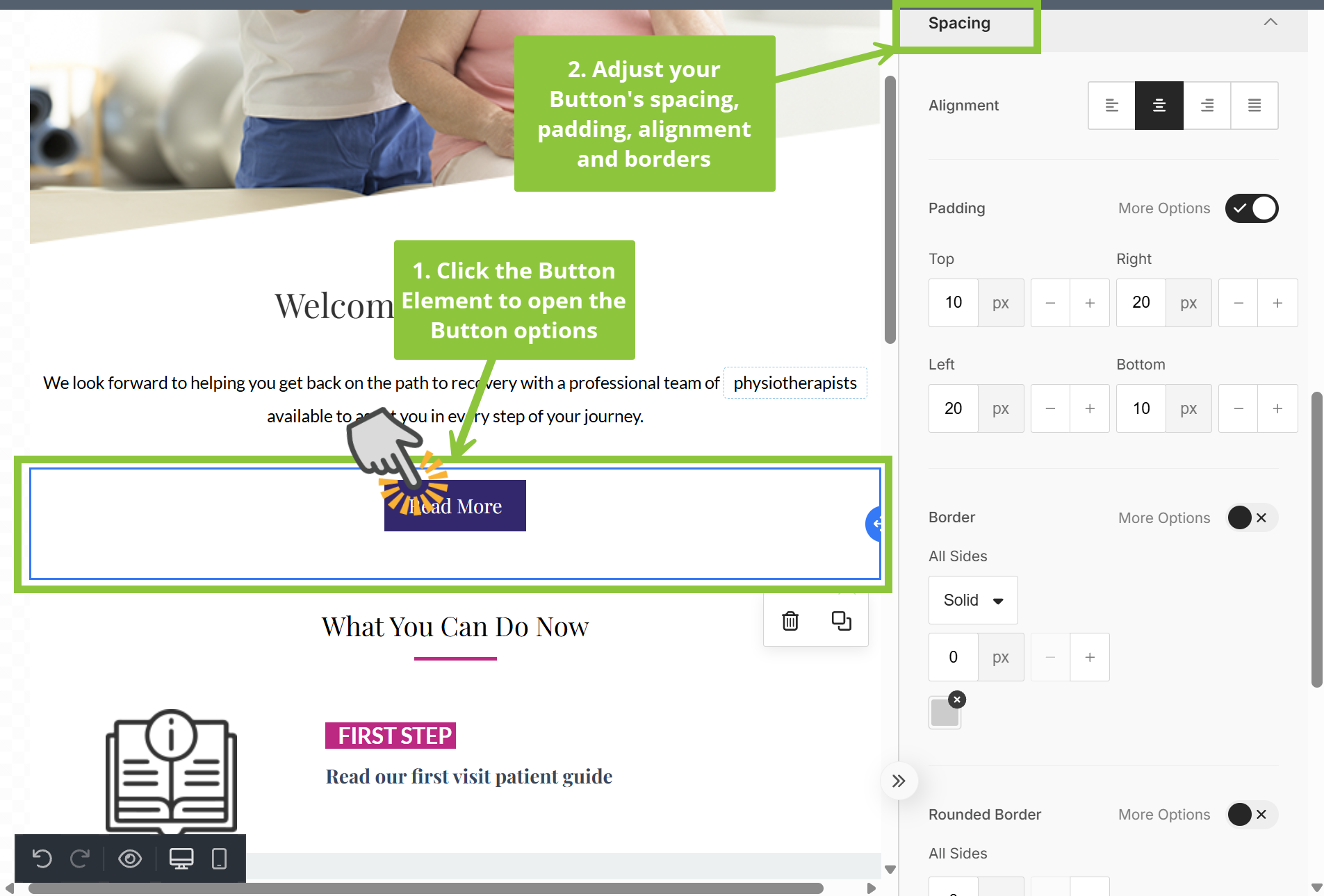 6) Scrolling even further, you’ll have options to adjust spacing and padding on the button.