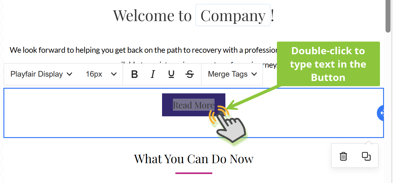 7) To edit the Button’s text, just double click the Button element you added to the page and type in what you’d like it to say.