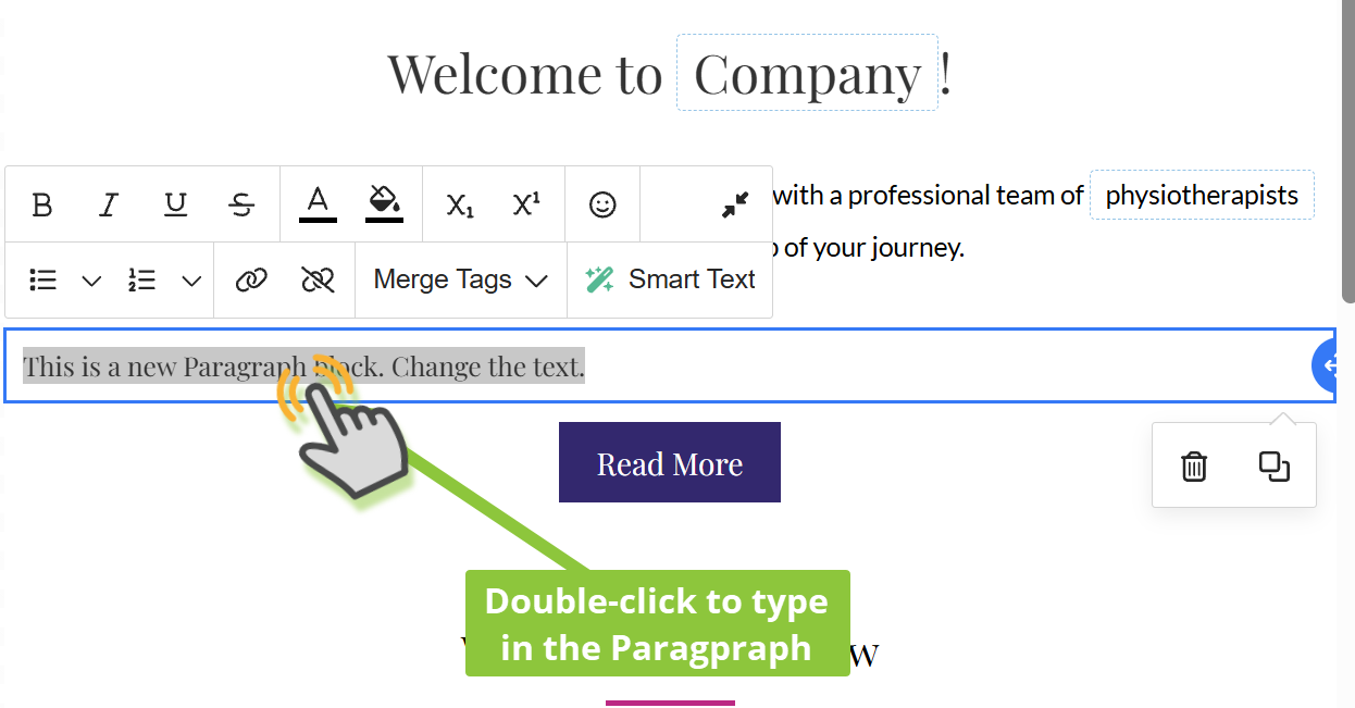 4) To edit the text of the Paragraph, just double click the Pragraph element and type in what you’d like.