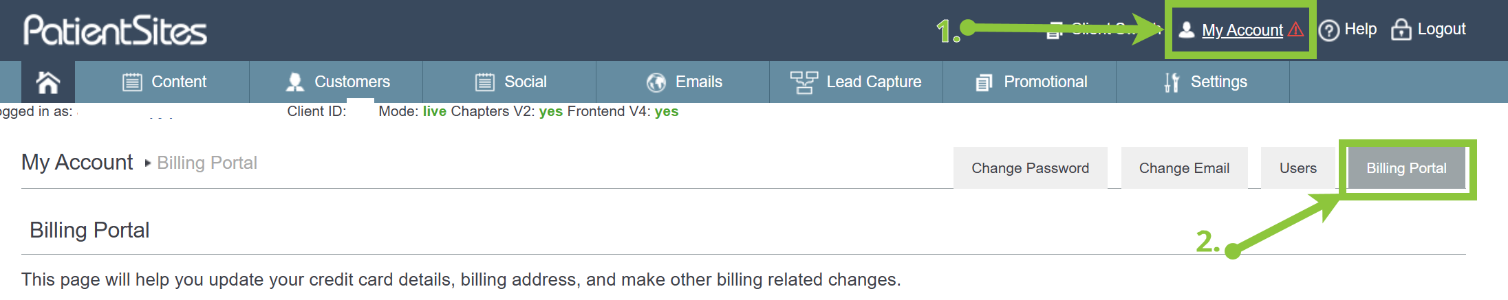 2) Head to My Account in the top right corner and click the Billing Portal tab.