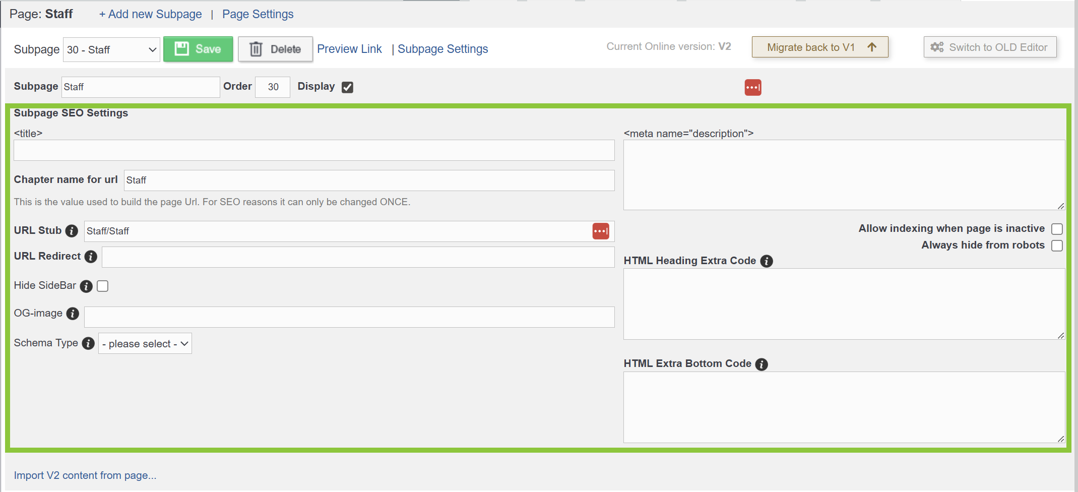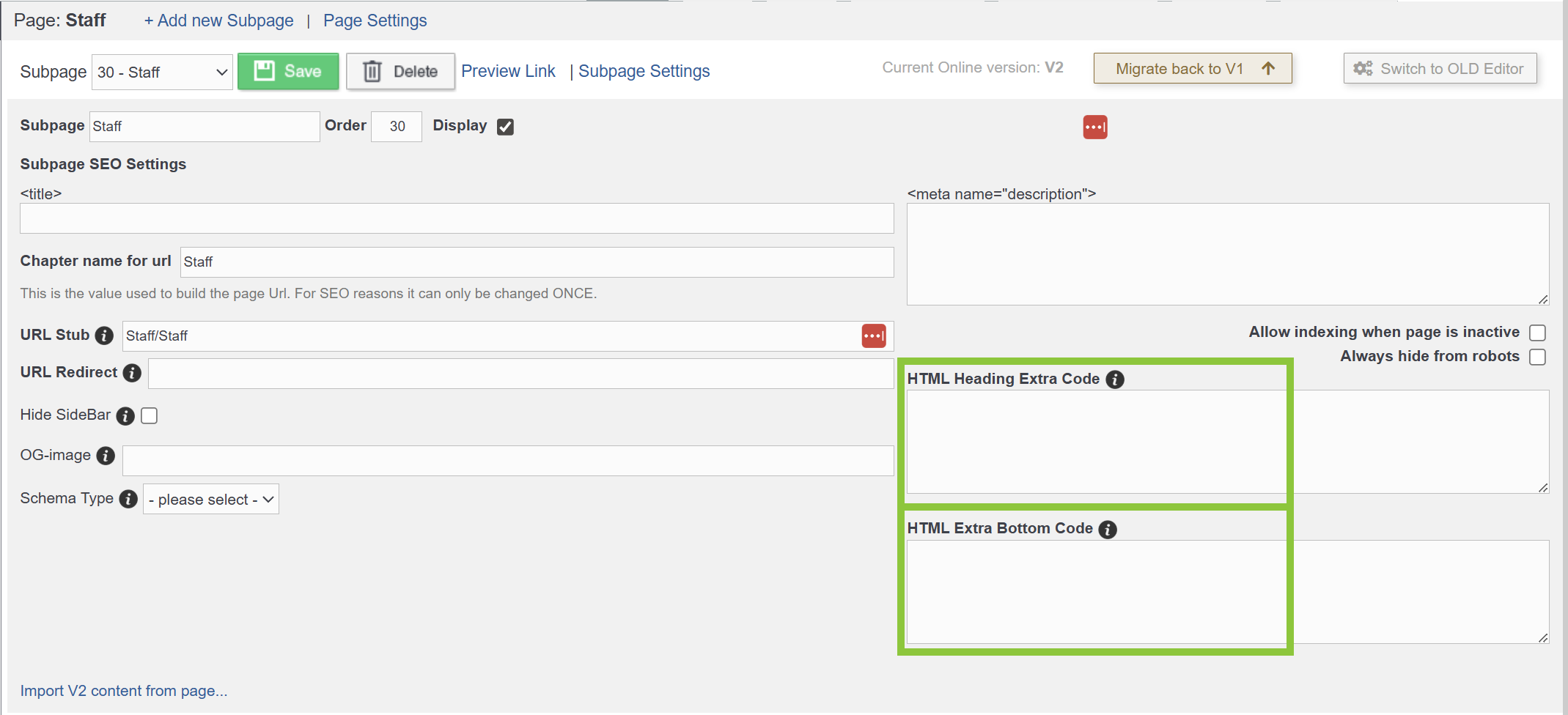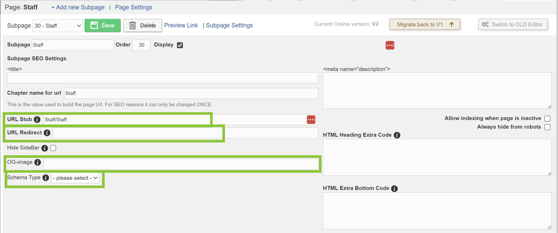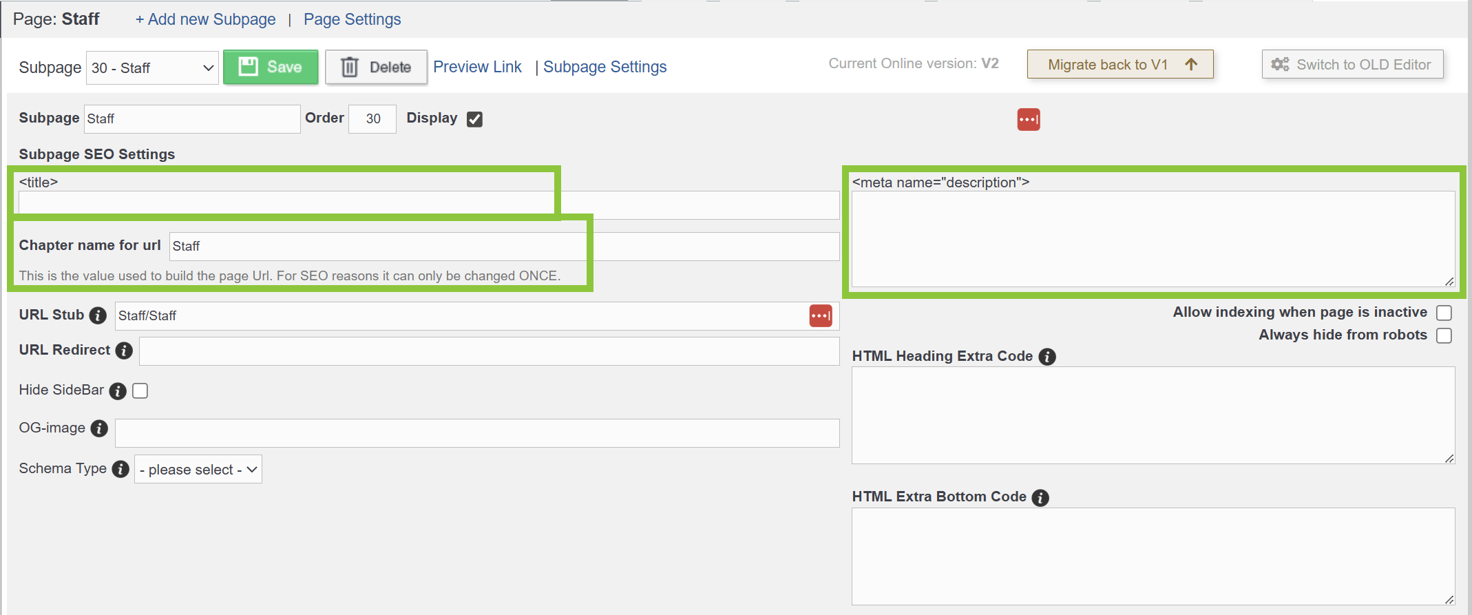 Configuring Subpage or Chapter SEO Settings