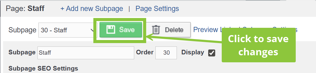 4) In the Subpage dropdown, choose the Subpage that you'd like to edit the SEO Settings of.